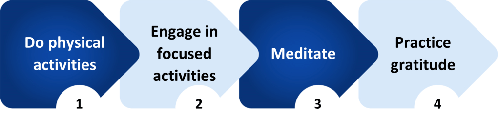 - Do physical activities that engage your body and mind: sports, yoga, the gym, dancing, and golf. The list is long. Your body needs exercise and your mind needs to practice staying focused.